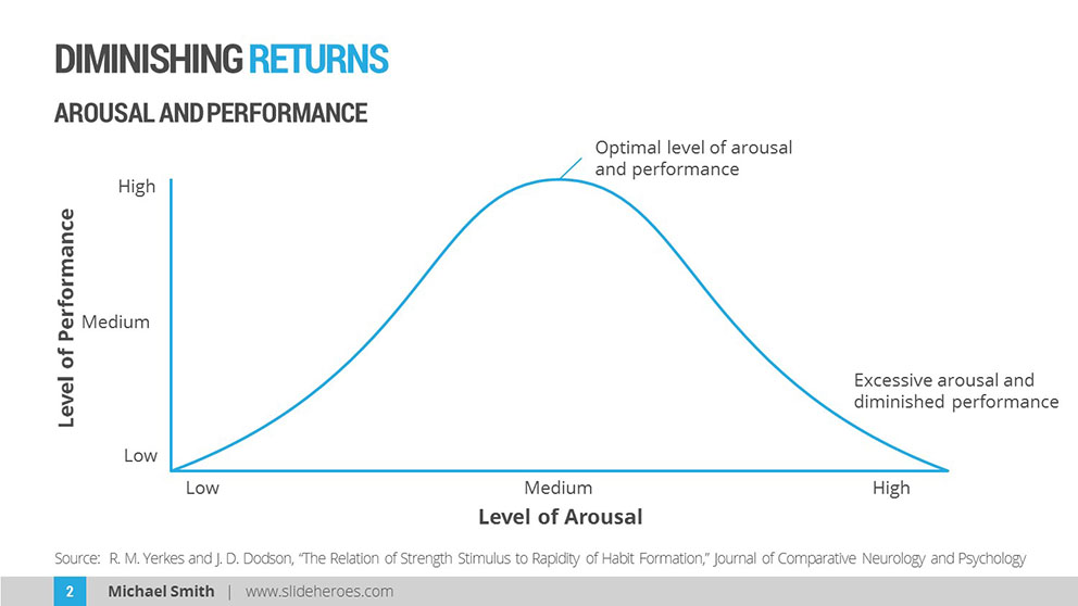 Some fascinating research on stress in public speaking conducted by Dr. Jeremy Jamieson, concluded that “changing cognitions produces downstream benefits”. Participants of the study who were placed in stressful public speaking situations, but prepped about the benefits of stress beforehand, exhibited better outcomes than control participants. (Note 5)
